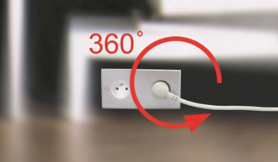 插頭有360°旋轉無礙設計,在使用操作上更全方位,可避免因隨電器設備使用上在扭曲時而損壞電線性能,不管是配合電源插座或電器設備等多方向性使用上這360°旋轉插頭設計能更靈活於室內的不同場合區域使用。 該360°旋轉插頭設計具有國際專利保護。其360°旋轉插頭可適用於德國和法國, 同時符合歐洲標準尺寸和通過安全測試 。歐格電子公司專利360°旋轉插頭的製造生產受到100%嚴格品質監控。非常適合電子業及家電產品製造商的產品設計搭配合作。