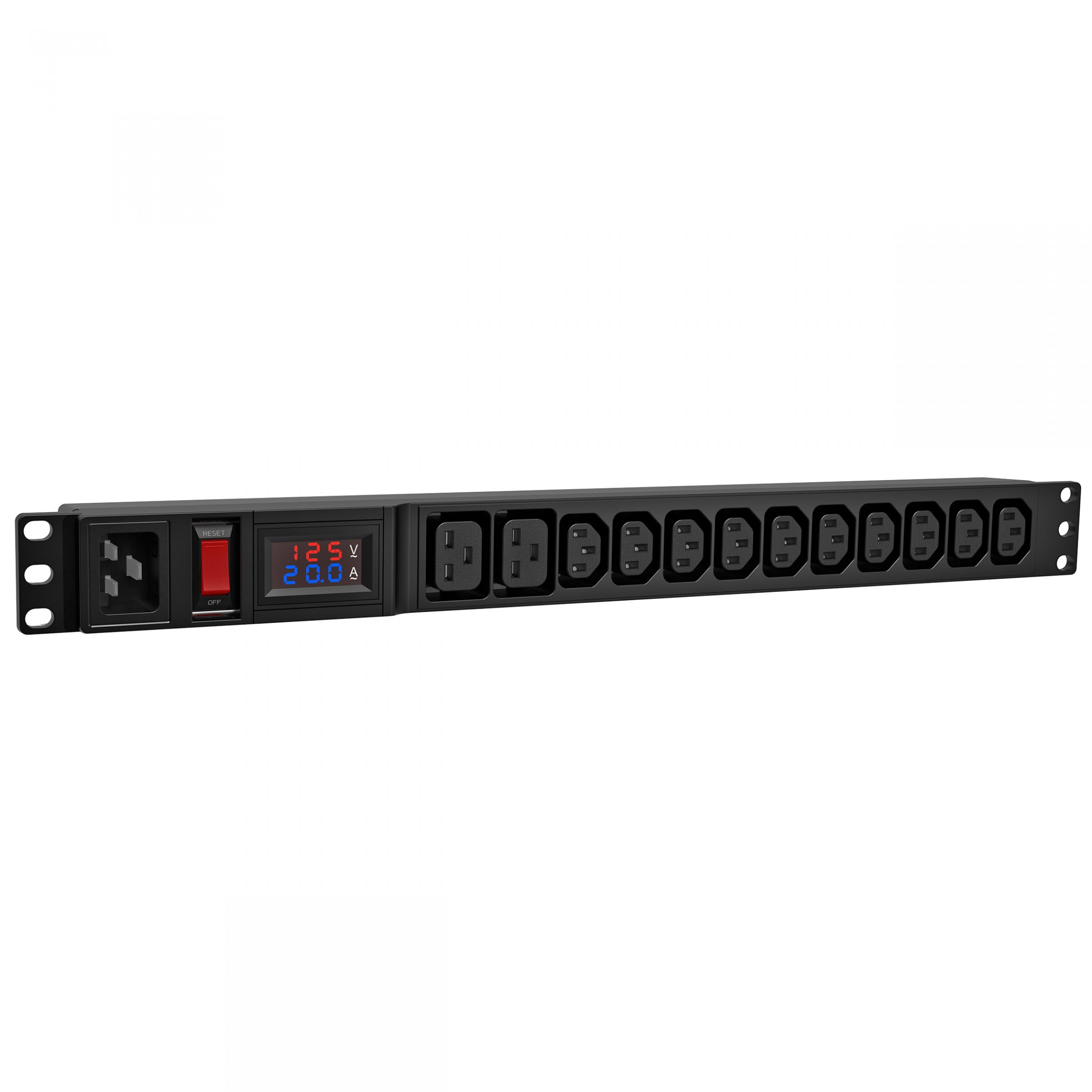 12孔 IEC C13/C19及前置 IEC C20 1U電壓電流顯示型電源分配器