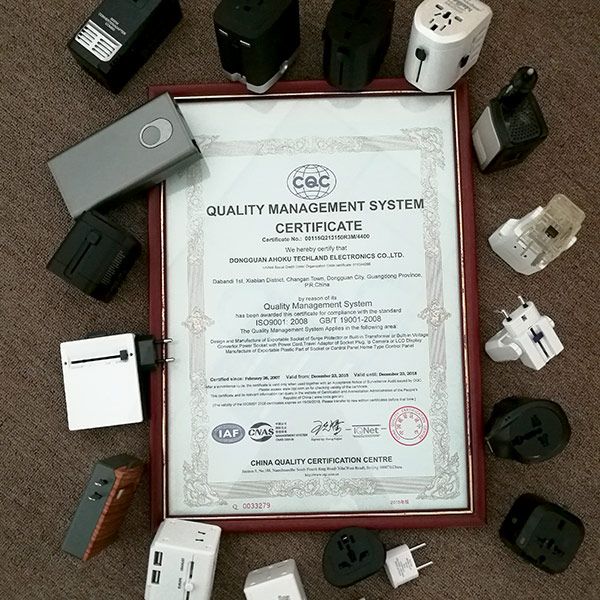 AHOKU 歐格電子東莞廠從1997年開始就獲得ISO9001管理認證到現在,AHOKU秉持ISO精神,有規範、有制度化及標準化流程,以提供客戶在AHOKU電源插頭插座、旅行轉換器變壓器相關產品的最佳品質重要肯定。