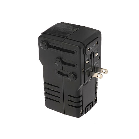 多合一全球旅行USB電壓轉換器是專為220/240V交流電轉換為100/120V降壓轉換器,以適用於大多數額定功率高達2000瓦的美國可攜式電器。帶有4個國際插頭的旅行電壓適配器可以用作變壓器、轉換器或USB充電器,旅遊時可連接您的可攜式設備,例如吹風機,平板電腦,智能手機或數位相機。該電壓轉換器簡潔精巧的專利設計更易於隨身攜帶。內置的4種插頭英式澳式美式歐式適用於全球大多數電源插座。2000W降壓轉換器用於驅動大功率電器,例如吹風機,直髮夾或捲髮器。雙電壓設備(例如100-240V全電壓設備)適合在轉換器模式下使用。2.4A雙USB充電端口可以支持任何5V供電設備。產品具備過載,過流,過熱,短路及保險絲保護設計,以確保您的設備安全。