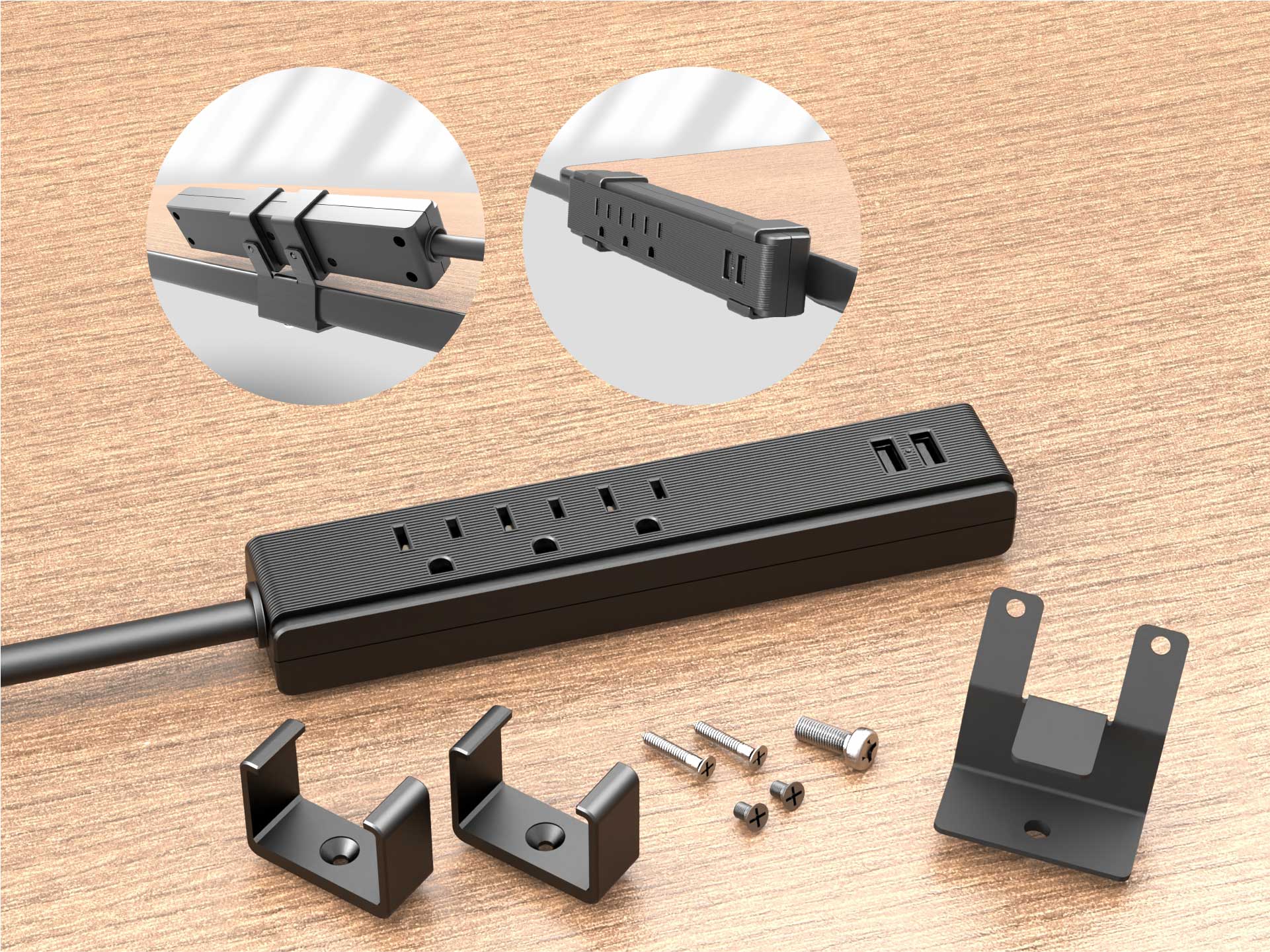 這款輕薄造型的電源延長線插座一般安裝在桌邊, 讓您很容易就能接觸到電源插座, 而不必彎腰到桌子底下. 選擇配件有支架夾具和螺絲可供安裝. 支架夾具上有安裝孔, 您可以把插座安全地固定在各種適用的地方,包括工作臺, 壁掛, 檯面等, 這絕對可以為你節省桌面空間, 並避免桌面雜亂.